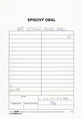 - Náš súčasník Daniel Okáli (1986)