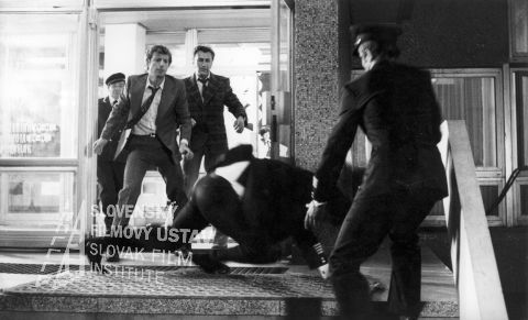 Na fotografii je uvedené nasledovné: Slovenská filmová tvorba, Štúdio hraných filmov, výroba filmu ADVOKÁTKA, 885 25 Bratislava - Koliba