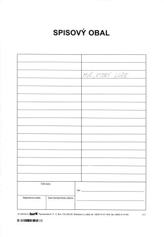 synopsa (3 ks) literárny scenár filmu (1 ks) obsah scenára (1 ks) lektorský posudok (2 ks) zmluva na odbornú spoluprácu (4 ks) koprodukčná zmluva (1 ks) vyúčtovanie honoráru (2 ks) zápis z pracovnej porady (2 ks) záznam telefonického hovoru (1 ks) korešpondencia (20 ks)