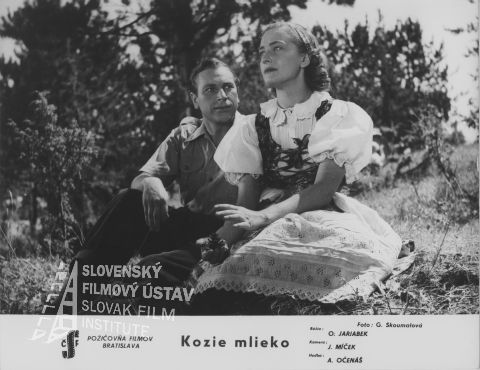 - Distribučná fotografia filmu Kozie mlieko (1950). V tráve sedia: Ctibor Filčík (Peter Dvorčiak) a Mária Prechovská (Zuzka Omastová).