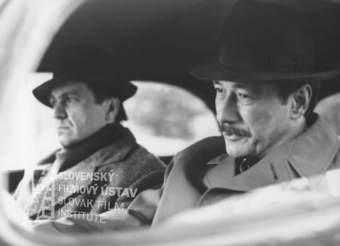 V aute sedia: vľavo Jiří Kodeš (Griga) a vpravo Ivan Romančík (Palčík)