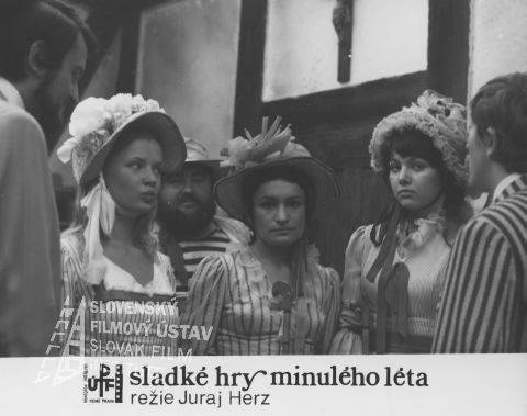 - Zľava doprava stoja: Milan Lasica (Barón), Marta Rašlová (?), Peter Debnár (Goya), Eva Matejková (?), Hana Lelitová-Prymusová (?) a Július Satinský (Flamengo)