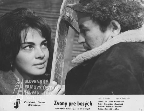 - Distribučná fotografia z filmu Zvony pre bosých (1965). Vľavo Ewa Krzyzewska (Žena) a vpravo Ivan Rajniak (Stašek).