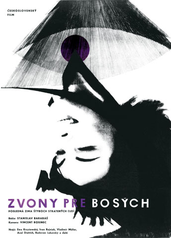 - Plagát k filmu: Zvony pre bosých (1965). Zobrazenie: koláž, detail tváre ženy (Ewa Kryżewska).