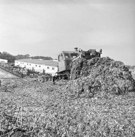 - Negatív fotografie z filmu: Sonda 10/1985 - Po dvadsiatich rokoch (1985). V popredí je kopa rastlín, za ňou je kombajn. V pozadí je budova kravína, pred ním sú v ohradách kravy. Celkom v pozadí sú stromy.