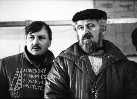 - Negatív fotografie z nakrúcania filmu Iná láska (1985). Vľavo režisér Dušan Trančík, vpravo kameraman Alojz Hanúsek.