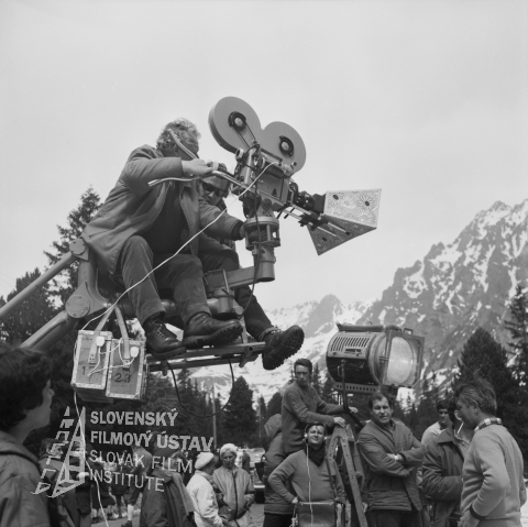 - Negatív fotografie z nakrúcania filmu Orlie pierko (1971). Zľava: Viktor Fančovič (otočený bokom), herec Ivan Mistrík (otočený bokom), zvukár Ondrej Polomský (so slúchadlami), herec Ivan Rajniak (4. sprava).