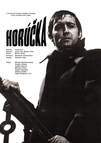 - Plagát k filmu: Horúčka (1975). Zobrazenie: foto, mladý muž v kabáte (Michal Dočolomanský).