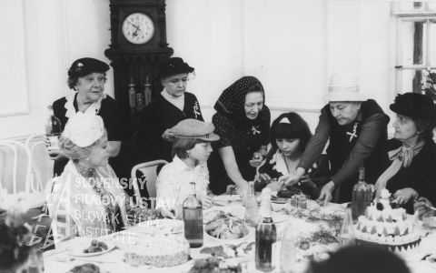 Pri bohato prestretom stole sedia zľava doprava: Blanka Waleská (Juríková), David Vlček (Jakub, Šimonin kamarát), Alena Karlíková (Šimona Studenková), Mária Prechovská (Magda Studenková, Šimonina mama), pri stole stoja zľava doprava: Eva Svobodová (malá Zuza), Marta Černická (Margarétka), Věra Nováčková (Pešková) a Zita Kabátová (Čupková)