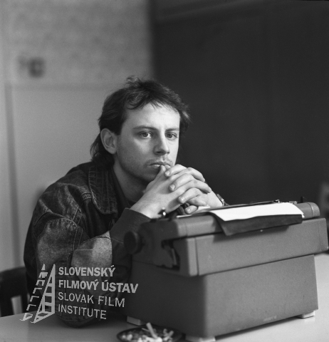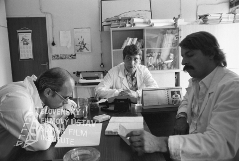 Negatív fotografie z filmu Zbohom, sladké driemoty (1983). Zľava: Jan Přeučil (Jaroslav Bartko), Vladimír Durdík (Milan Repík) a Marián Zednikovič (Aurel Kyselka).