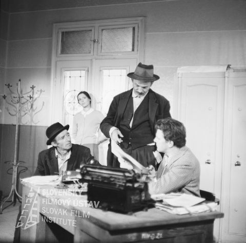 V popredí vľavo pri stole sedí Vladimír Kostovič (Lojzko), v pozadí pri dverách stojí Lorna Homoláčová (Anna Dubská, manželka Martina Dubského), v strede pri stole stojí Vladimír Petruška (Havran, otec Ondreja Havrana) a vpravo pri stole sedí Jan Kačer (predseda JRD Martin Dubský, manžel Anny Dubskej), v popredí na stole je položený písací stroj