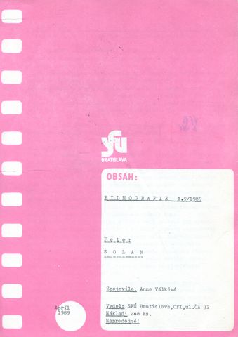 Zodpovednosť zostavil: Štefan Vraštiak Datovanie Bratislava : Slovenský filmový ústav, 1988 Fyzický popis 7 s. Edícia/Séria Filmografia ; č. 4/1988 Jazyk slovenčina Katalogizácia SFU, 16.07.2014 ; AACR2 (rev.29.01.2026) Kategória príručky Názov časti 1898 - 1945 Zodpovednosť Jiří Havelka Datovanie Praha : Státní pedagogické nakladatelství : AMU v Praze - Fakulta filmová, 1958 Fyzický popis 205 s. Edícia/Séria Učební texty vysokých škol Jazyk čeština Katalogizácia SFU, 29.06.2006 ; AACR2 (rev.23.12.2021) Kategória príručky Zodpovednosť zostavili: Václav Macek, Štefan Vraštiak, Marianna Forrayová Datovanie Bratislava : SFÚ, jún 1988 Fyzický popis 10 s. Edícia/Séria Filmografie ; č. 5/1988 Jazyk slovenčina Katalogizácia SFU, 17.10.2005 ; AACR2 (rev.27.01.2026) Kategória príručky Zodpovednosť zostavila: Marianna Forrayová Datovanie Bratislava : SFÚ, apríl 1989 Fyzický popis 9 s. Edícia/Séria Filmografie ; č. 8/1989 Jazyk slovenčina Katalogizácia SFU, 17.10.2005 ; AACR2 (rev.27.01.2026) Kategória príručky Zodpovednosť összeállította: Mihálik Gizella Datovanie [Bratislava] : Szlovák Filmtudományi Intézet, 1988 Fyzický popis 6 s. Edícia/Séria Filmográfia ; sz.. 6/1988 Jazyk maďarčina Katalogizácia SFU, 17.10.2005 ; AACR2 (rev.30.09.2025) Kategória príručky Zodpovednosť spracovala: Marianna Forrayová Datovanie Bratislava : SFÚ, november 1989 Fyzický popis 11 listov Edícia/Séria Filmografia ; č. 18/1989 Jazyk slovenčina Katalogizácia SFU, 29.01.2026 ; AACR2 (rev.29.01.2026) Kategória príručky